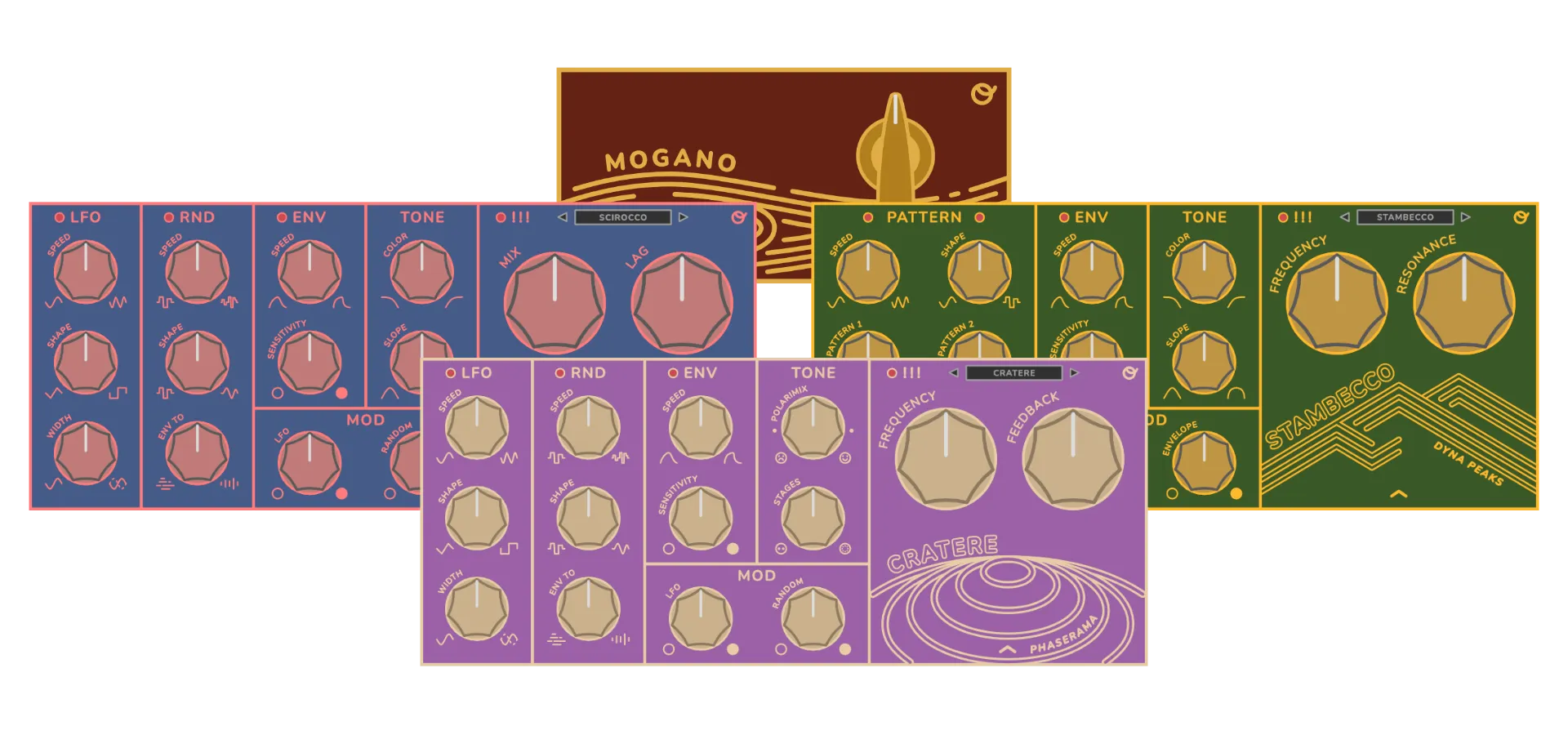 Scirocco, Mogano, Stambecco and Cratere are the first plugins I released with Eftilo. For them, I designed and developed everything, from the UI and framework to the DSP. All four plugins include zero-delay feedback non-linear models of analog circuits used in audio, ranging from synthesizer VCFs to multi-stage phasers.
