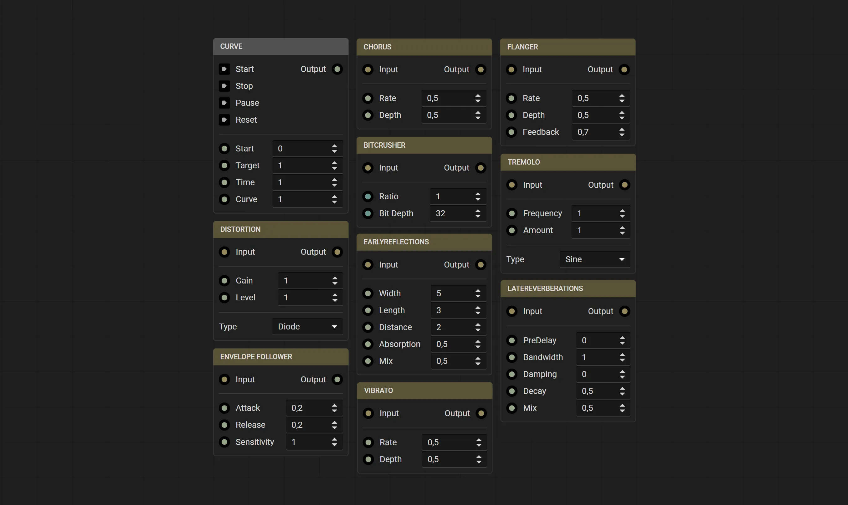 While working at Elias Software, I developed some audio DSP effects for their real-time sound synthesis and adaptive music engine Elias 4. The effects include anything from distortion, bitcrushing and modulation algorithms, to a fully fledged parametric reverb based on the Dattorro Plate algorithm with a custom designed early-reflections stage.