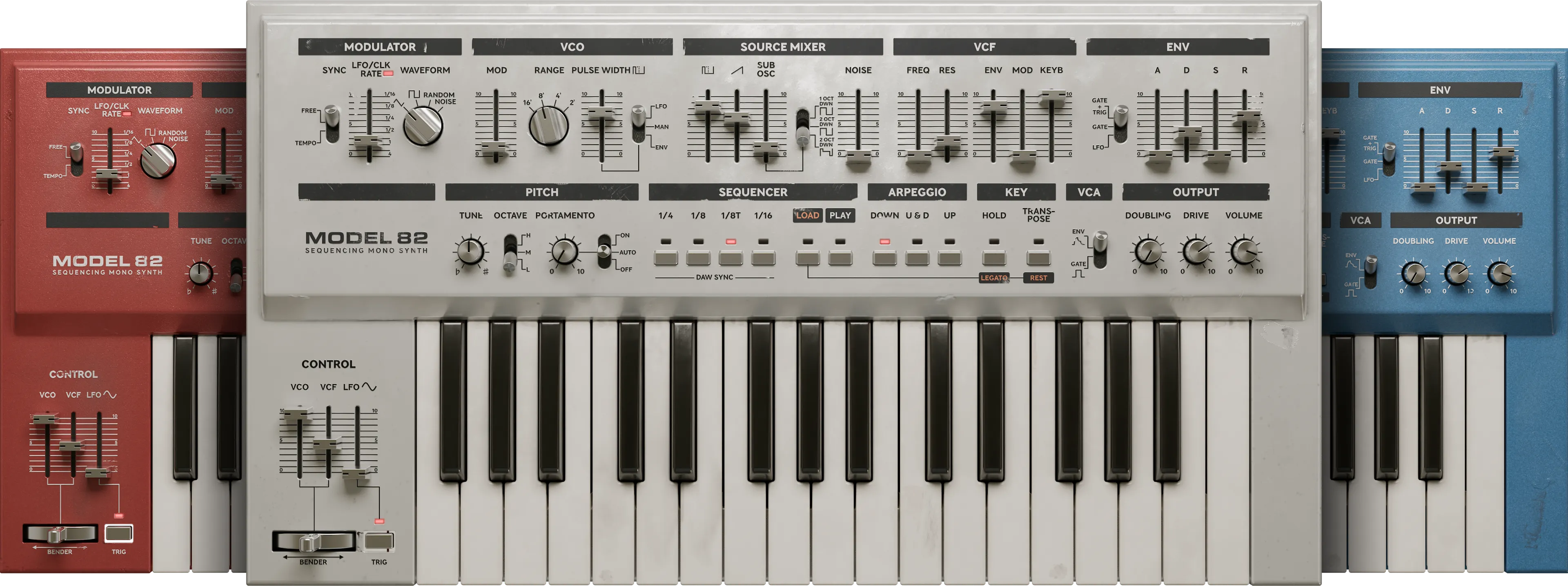 Model 82 is the last project I worked on while at Softube. Due to the tight schedule, I didn't work on the sequencer and arpeggiator emulations, if not for some small details, I instead was tasked with the modeling of the hardware unit, and the design of the drive and doubling effects. I also developed the logic needed for the sequencer and arpeggiator to interact with the main synth voice.